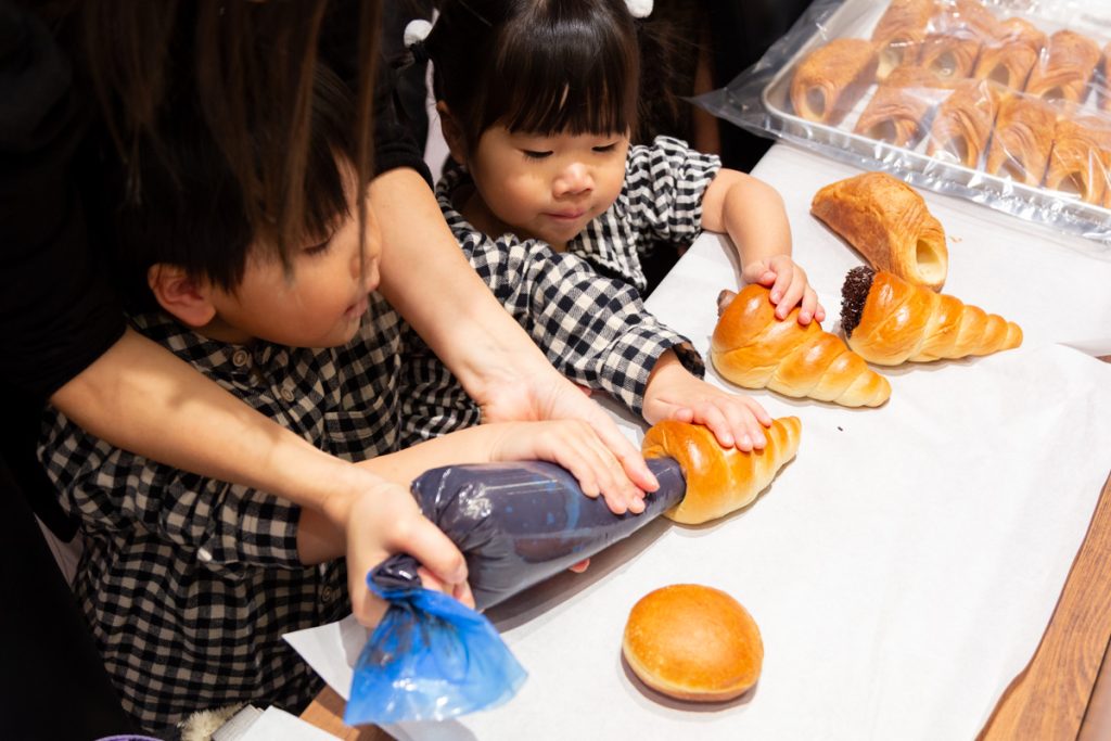 ポンパドウルではパンの仕上げ体験を開催。