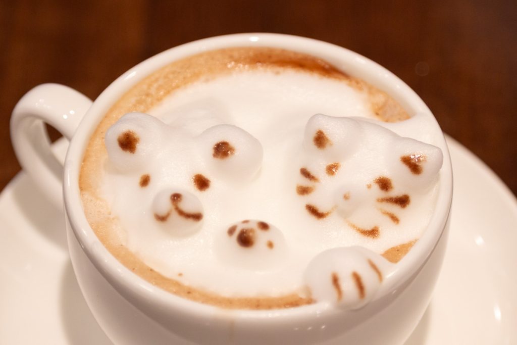 ホットココアの上にふわふわのミルクで形を作る、技術力の高いお仕事体験。