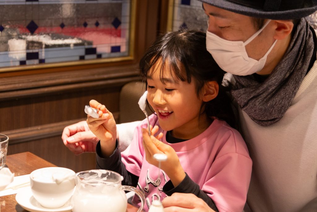 エプロン姿のちびっ子店員さんが、注文を取ってパパママにコーヒーを届ける姿はめっちゃ微笑ましかったです!