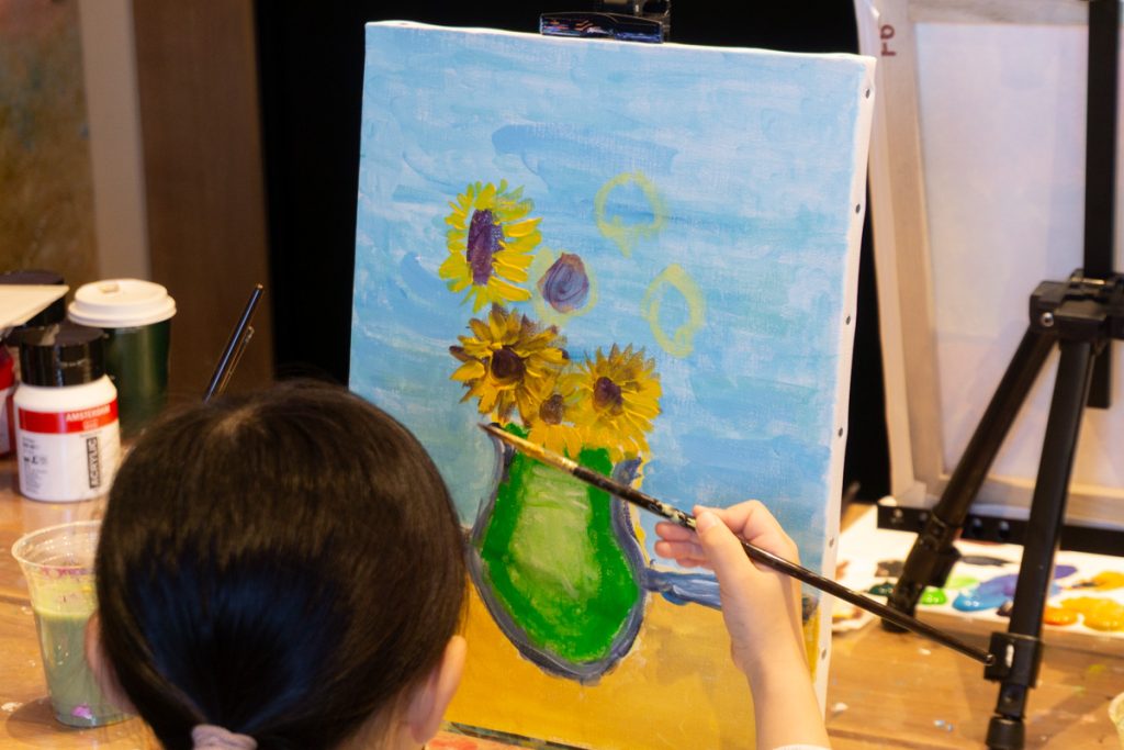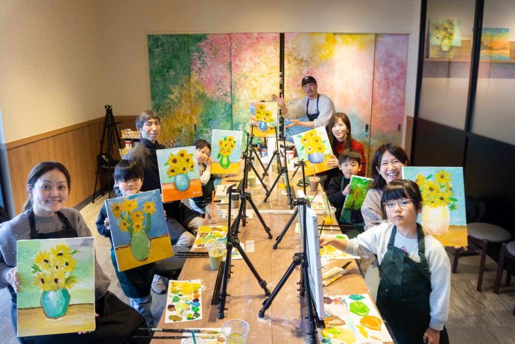 タリーズコーヒー×Artbar Lab Hirakataのコラボ企画、親子で『ゴッホのひまわり』を描く体験を開催。