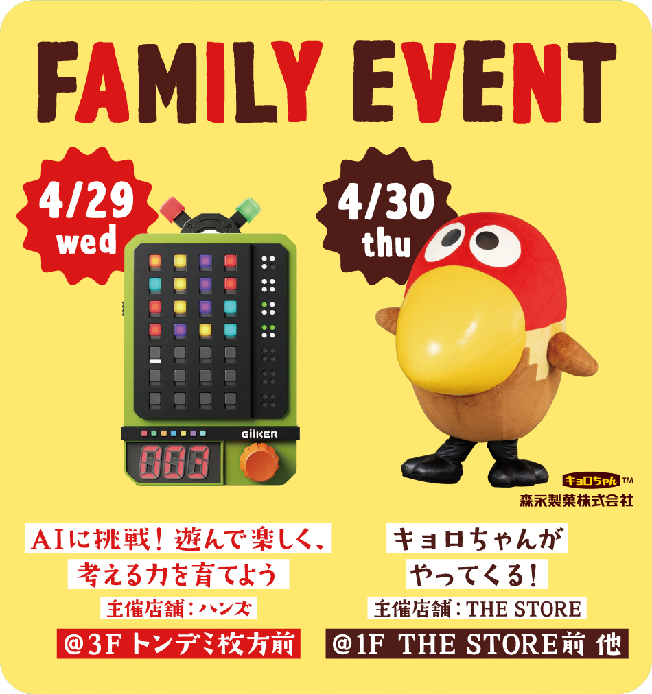 GW前半の4/29(水祝)・30(木)は、お買い物ついでに家族で楽しめるイベントが開催!