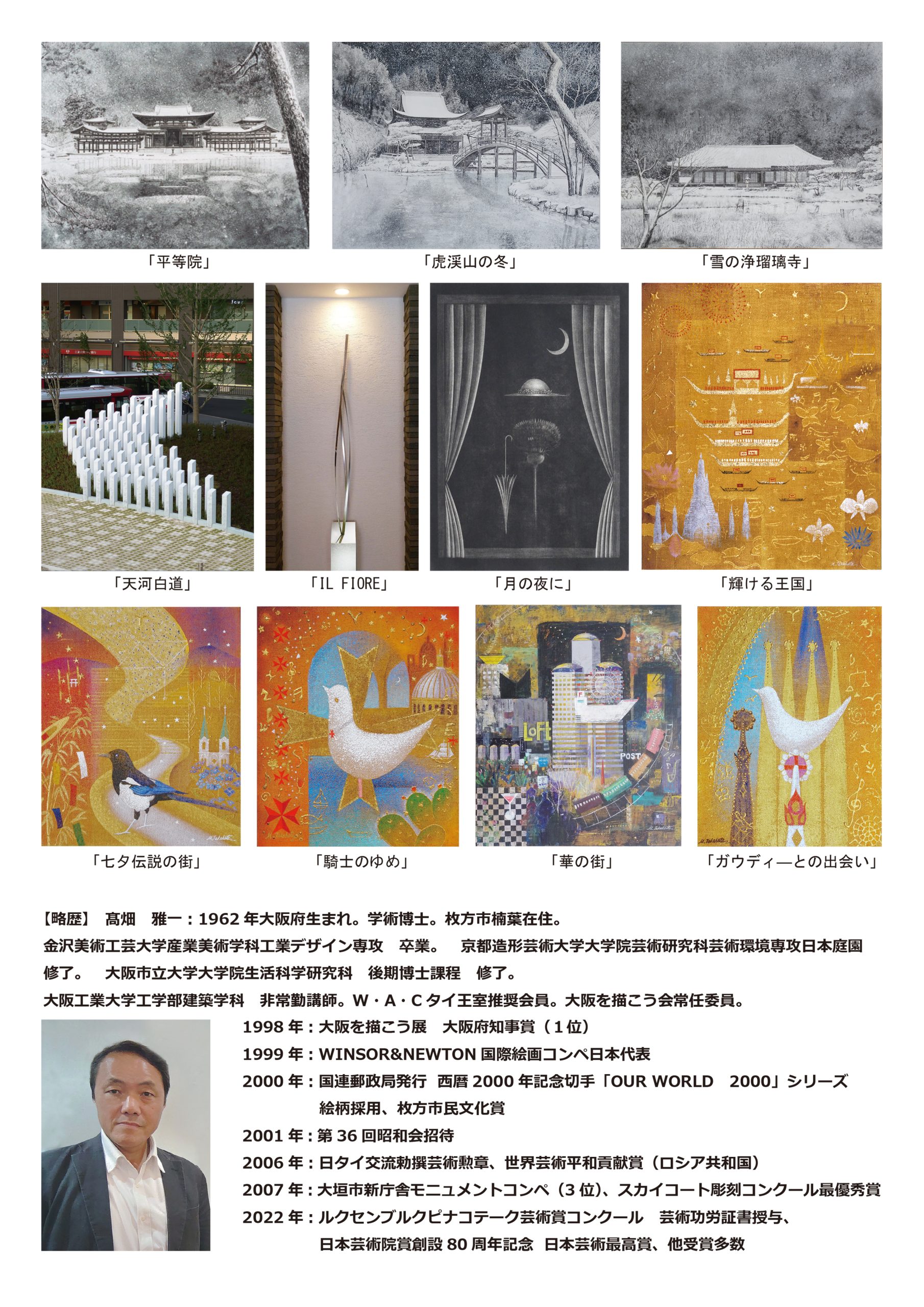 「第4回 ひらしん美術展」は、楠葉在住で枚方市民文化賞受賞者の髙畑雅一さんの作品展。