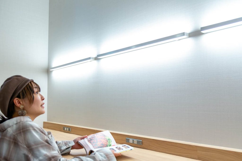 壁側から優しく手元を照らしてくれるので、どれだけ前かがみになっても手元が自分の影になることがなく、集中しやすいんだとか。