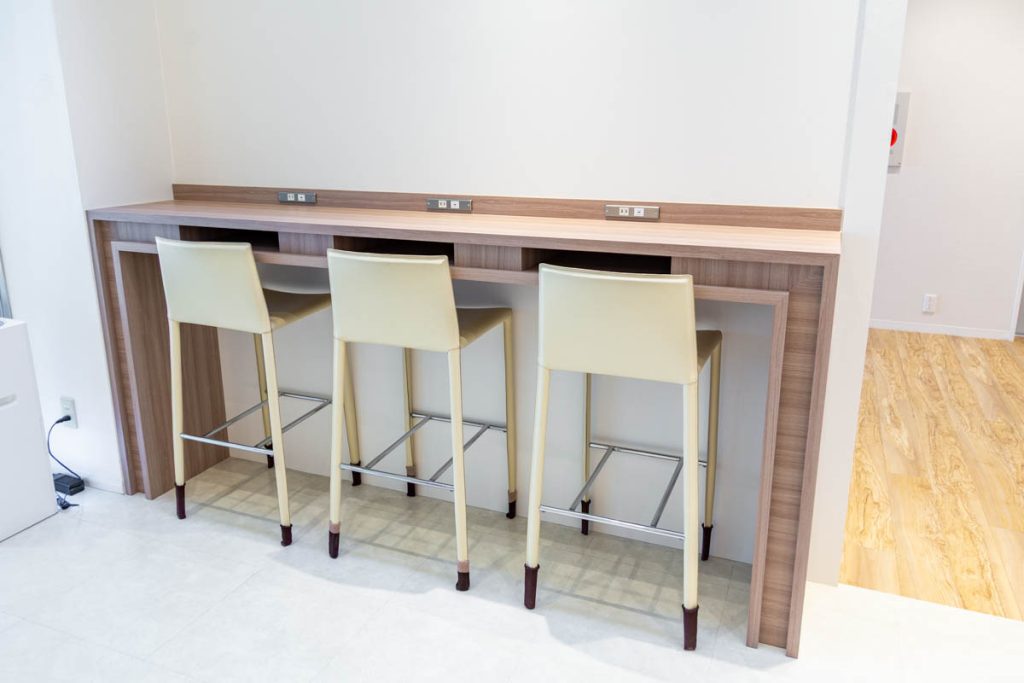 ソファでくつろいだり、電源のあるカウンターでPC作業をしながら待つこともできます。