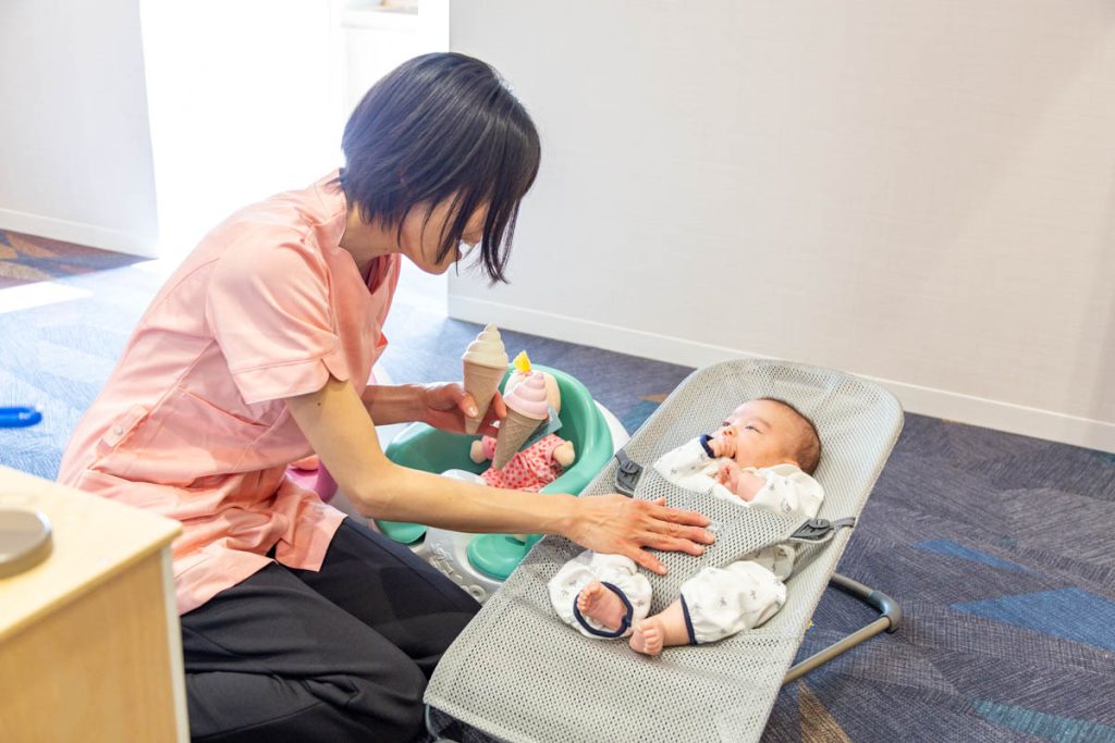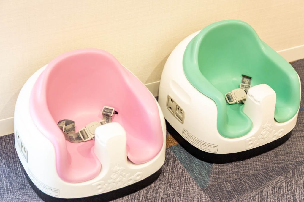 赤ちゃん用の椅子やバウンサーも用意されていて、様々な年齢のお子さんが安心して過ごせるようになっています。