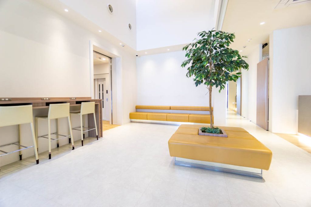 入ってすぐの待合ロビーは、吹き抜けが開放的な明るい空間!