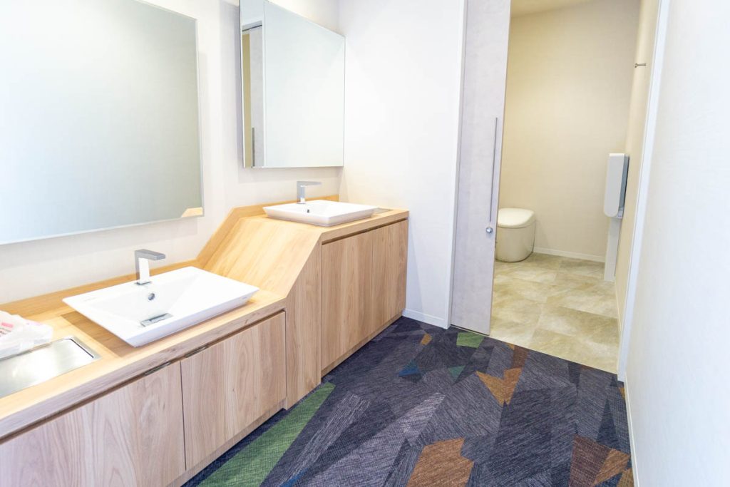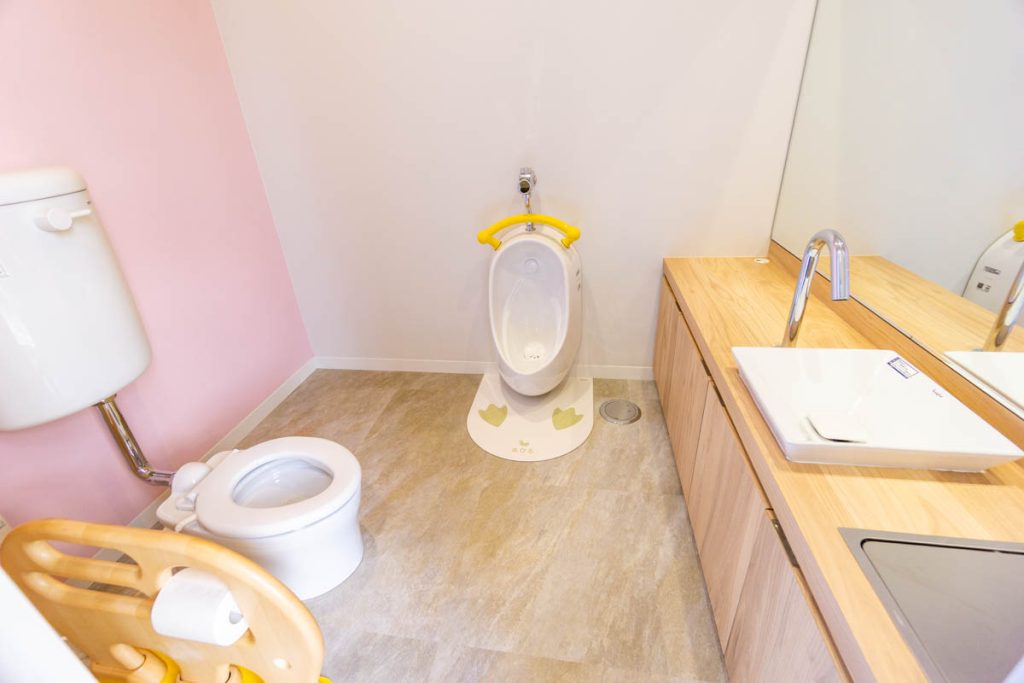 奥には大人用のトイレ&おむつ替えシートと、子供用のトイレが。