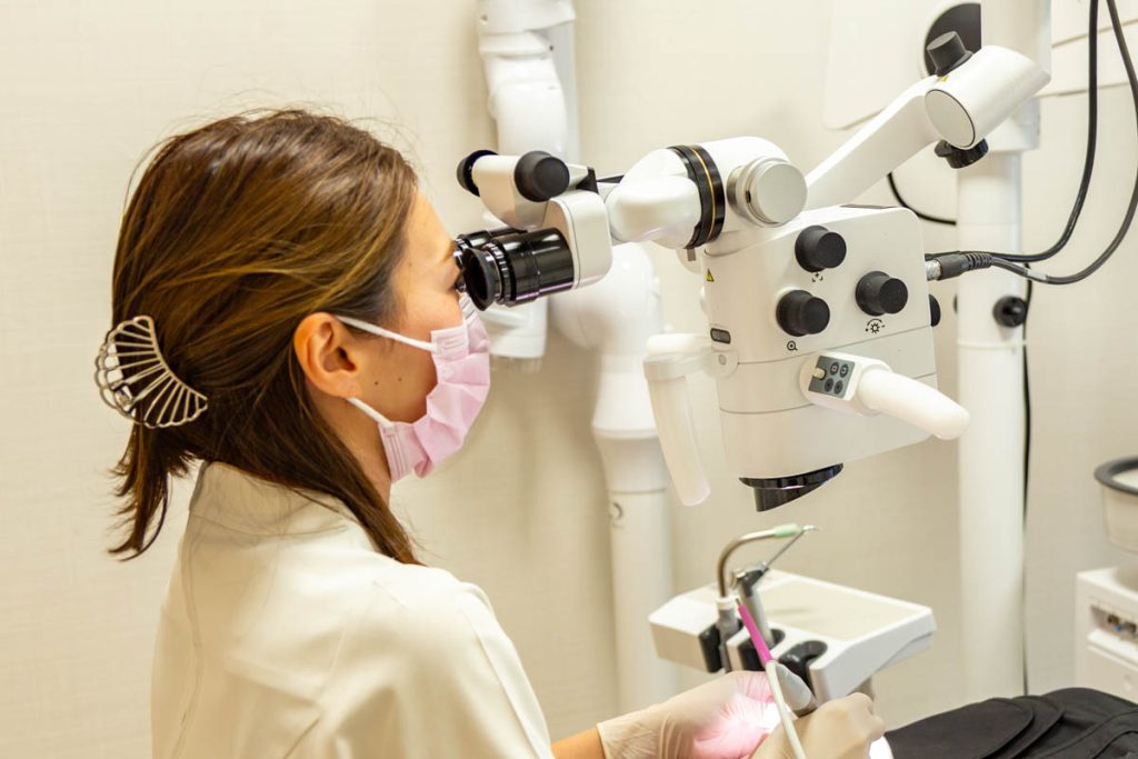 マイクロスコープでお口のなかをしっかり確認しながらケアしてもらったり、マイクロスコープの画像を画面に表示させることができます。