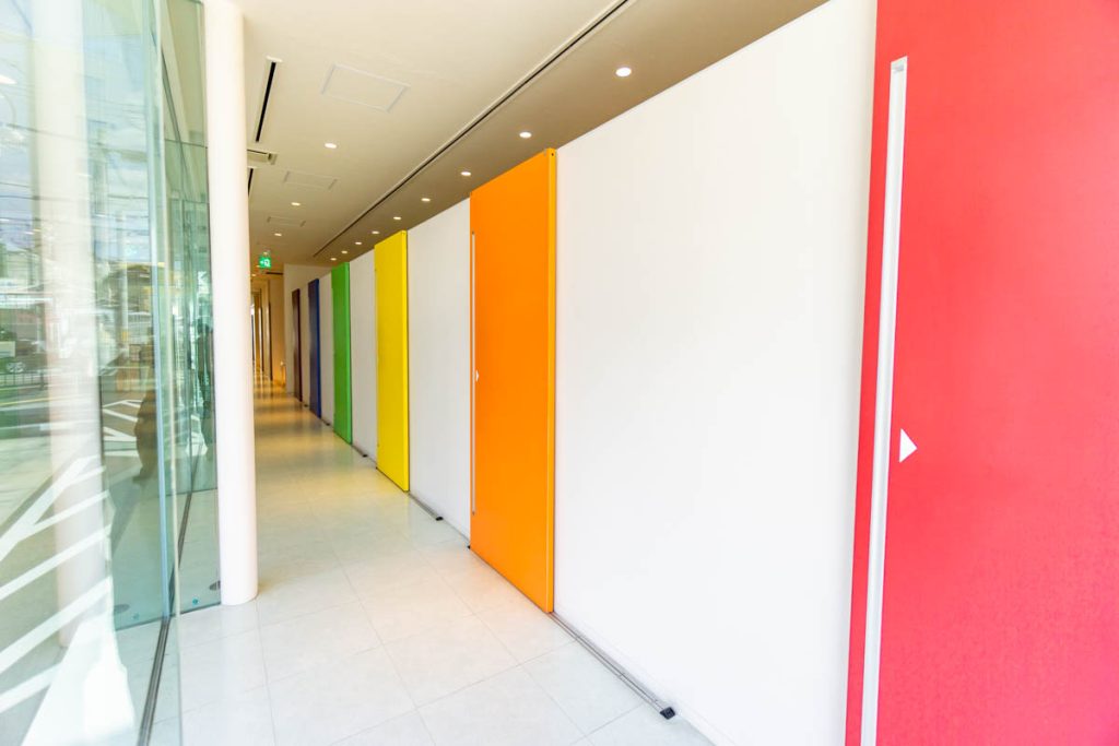 奥にはカラフルな扉が並んでいて、