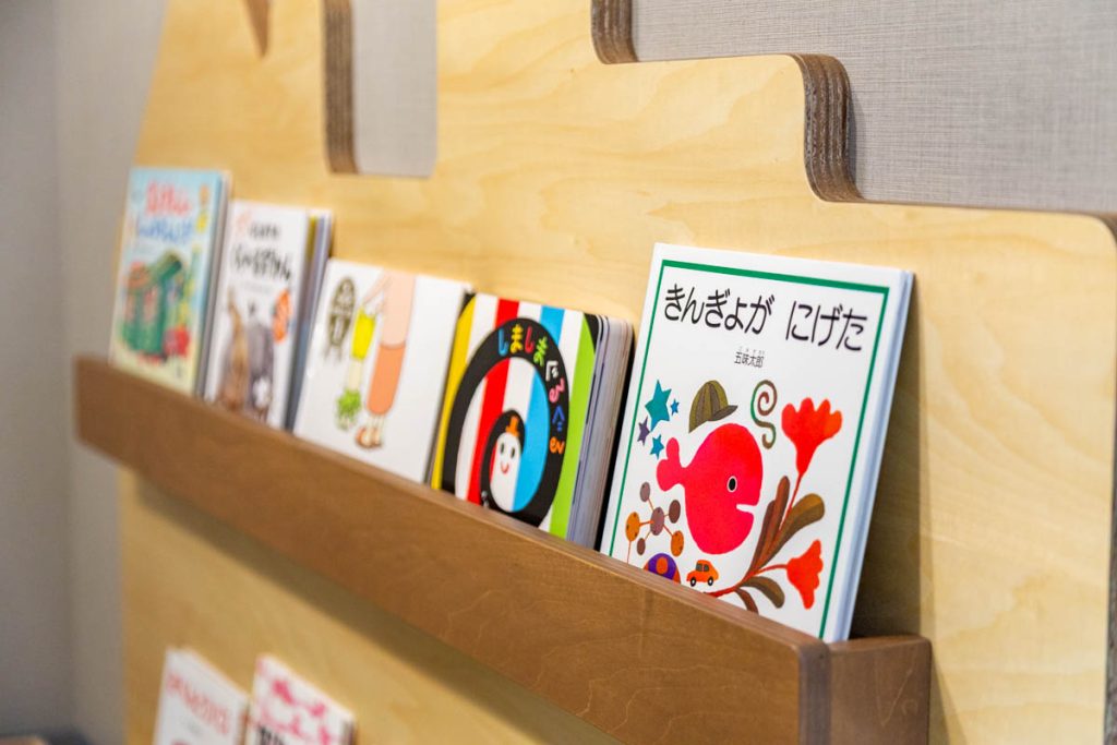 おもちゃのエリアの隣には本棚とカウンターが。