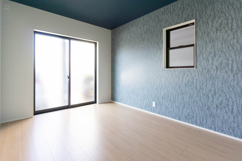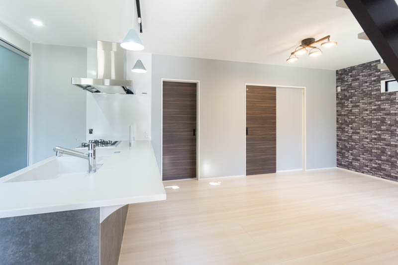 奥側のレンガ調のアクセントクロスがお部屋の雰囲気にインパクトを与えてくれています。