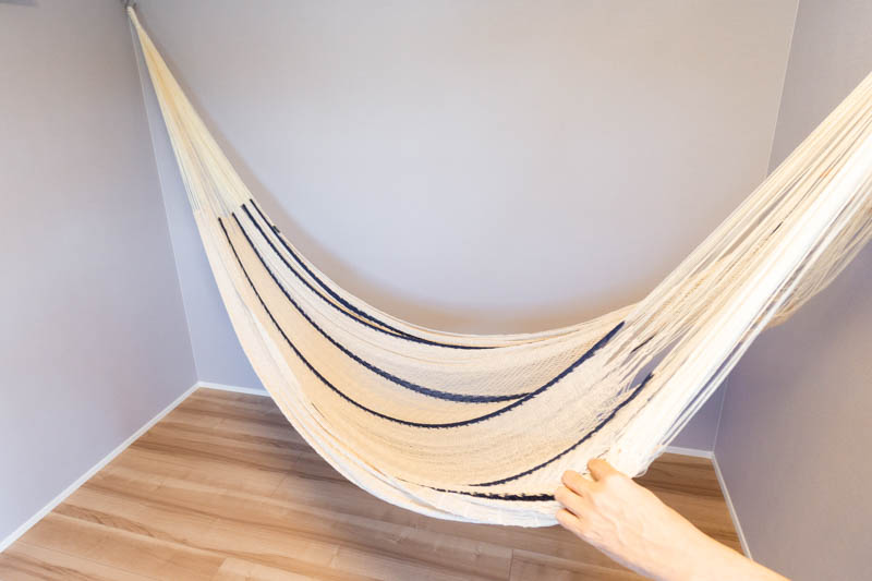 このお部屋にはハンモックが設置されているんです」