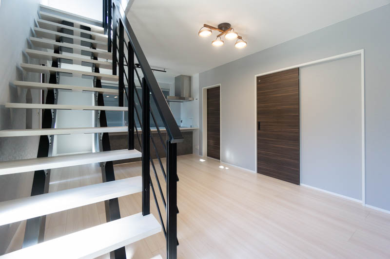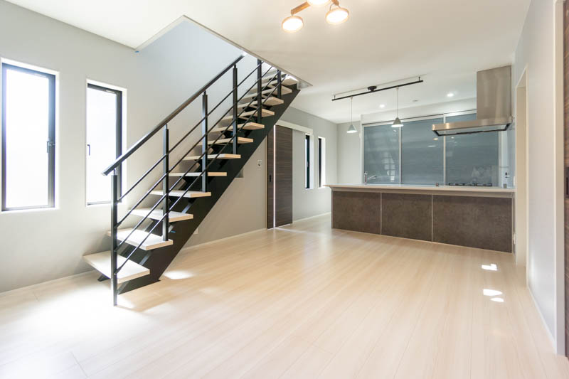 オープン階段が開放感あふれるオシャレなリビング、