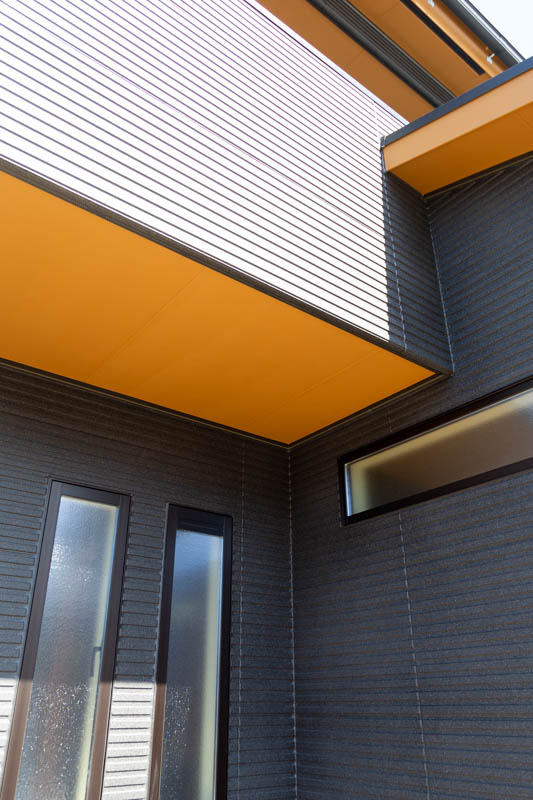 お家を正面から見ると左右がシンメトリー(対称)になっていて、黒い外壁も相まって引き締まった印象に見えます。