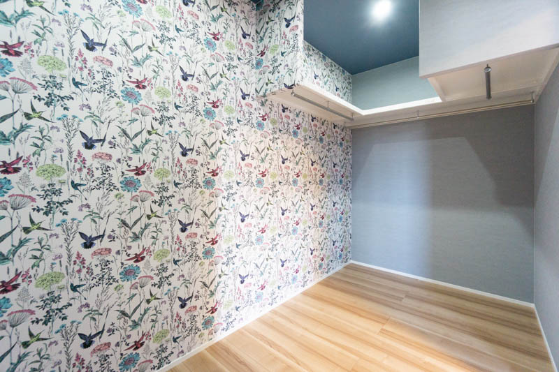 「こちらの小鳥が描かれたクロスは施主さまの一番のお気に入りのクロスになっています」