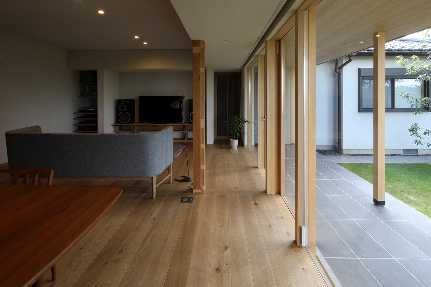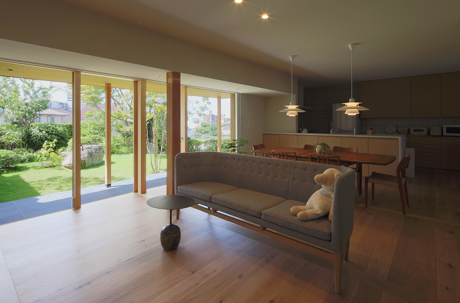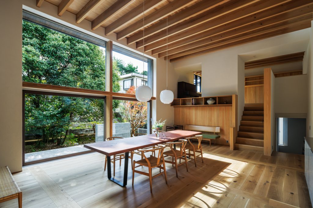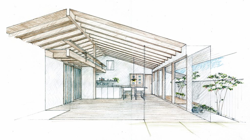 平屋の住まいの特徴は、大地に近いところで暮らしが完結し、低重心の落ち着いた生活空間になること。