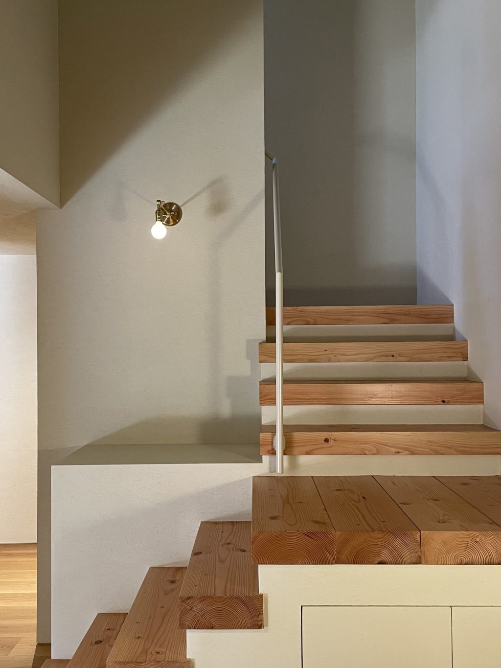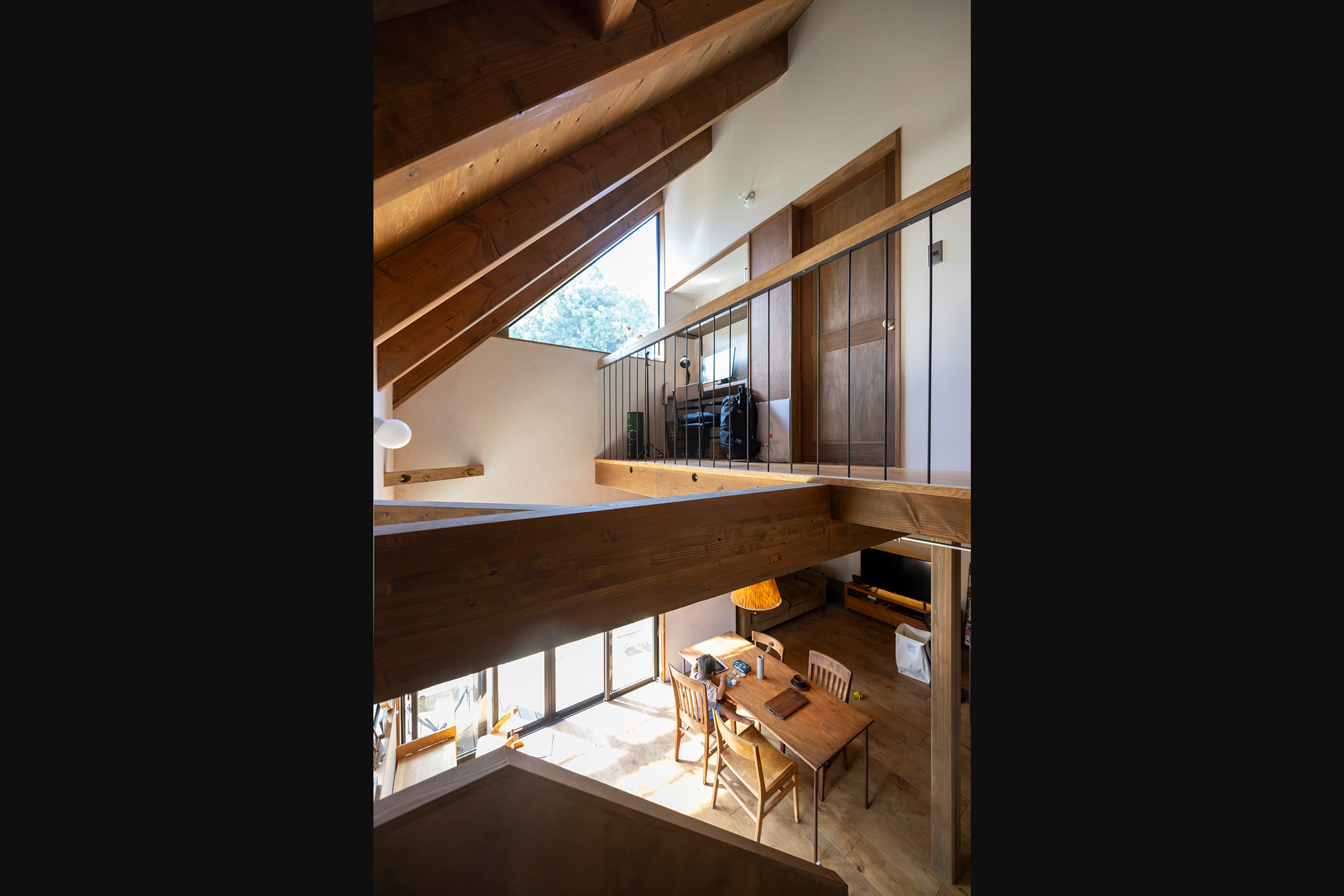 縦に広がる空間と横に広がる空間を織り交ぜることで、開放的で伸びやかであると同時に包まれるような安心感のある家になりました。