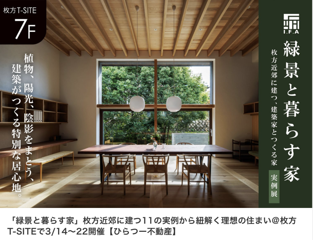建築家との家づくりを枚方、交野、寝屋川を中心に不動産探しから、設計、施工、アフターメンテナンスまで一貫して提供する住宅会社です。