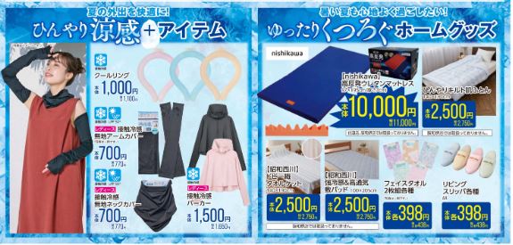 夏の厳しい暑さに対応する涼感グッズなどもお得に。