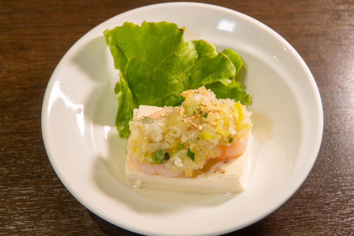 ★本日の前菜(海老と豆腐のネギソース掛け・よだれ鶏)