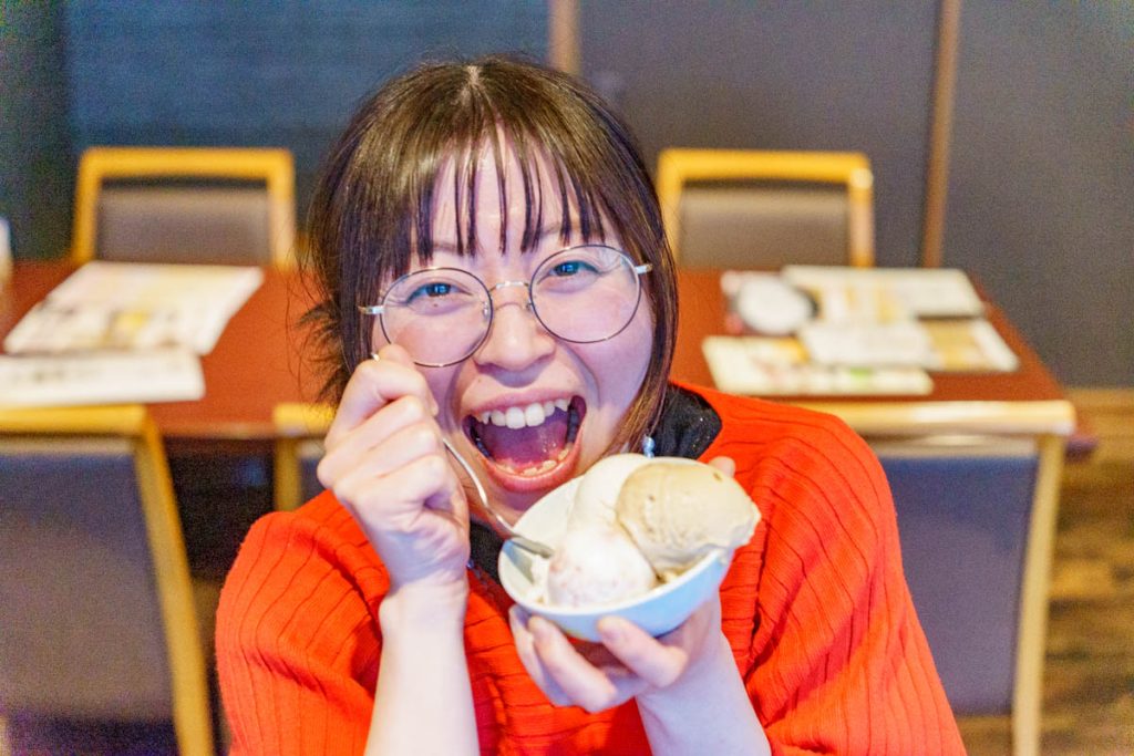 たまちゃん、トリプルの次はダブルをおかわりして計5個もジェラートを食べちゃいました。ジェラート挟んだらまたお肉も食べたくなっちゃう!