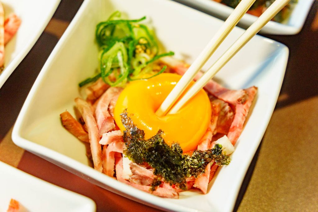 普段ならもったいなくてチビチビ食べちゃいそうなのですが、食べ放題なんで贅沢に一気食べ!ユッケの生感も残しつつローストビーフにちょっと近いような食感。たまらんおいしさ!