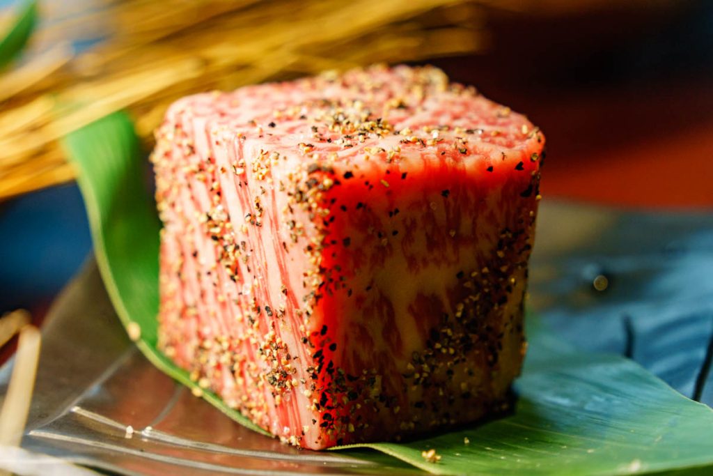 中でも目を引くのは、厚切りの「ミスジステーキ」と迫力満点の「黒毛和牛塊肉」。見た目が芸術的すぎる。