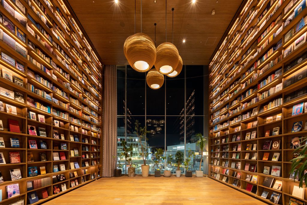 会場は4階、SNSでも話題の7m本棚があるイベントスペース。