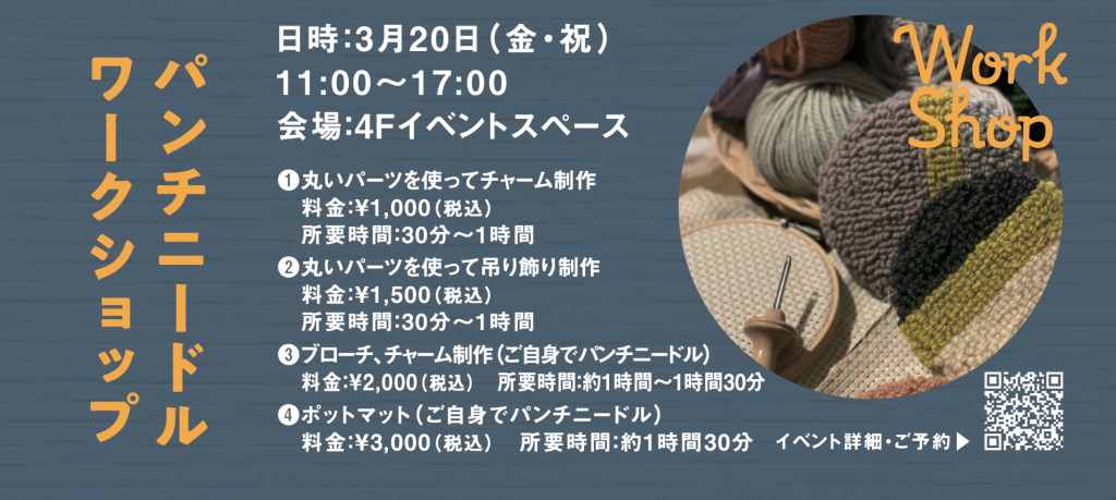 今回はチャームや吊り飾り、ブローチなどが作れるワークショップです。