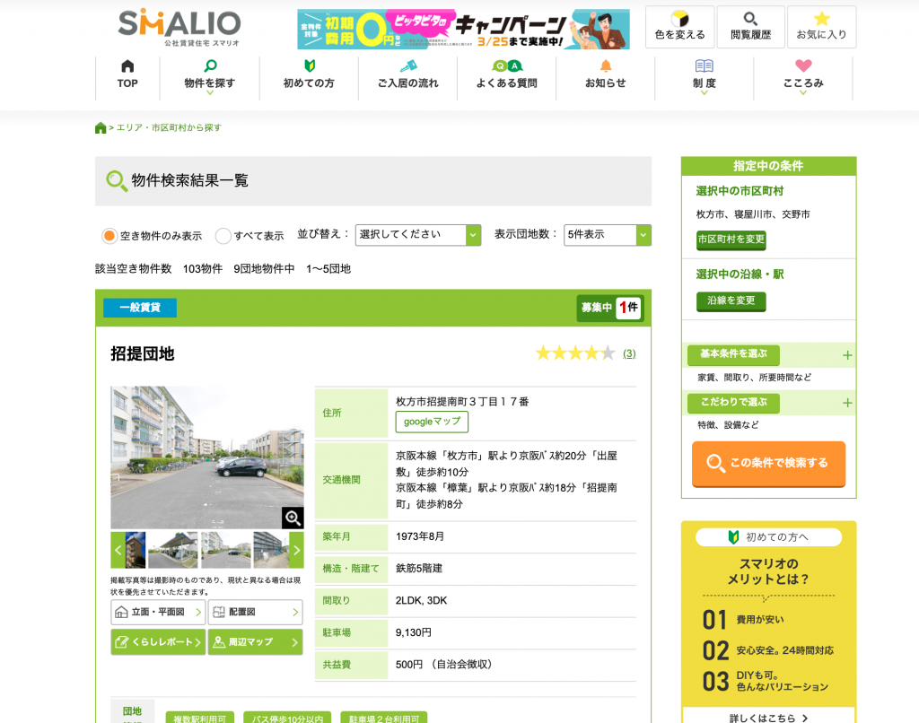枚方市内なら牧野団地にも対象物件があったよ〜」