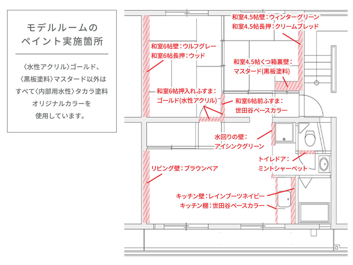 モデルルームのペイントした箇所・使用した色はこちら↓