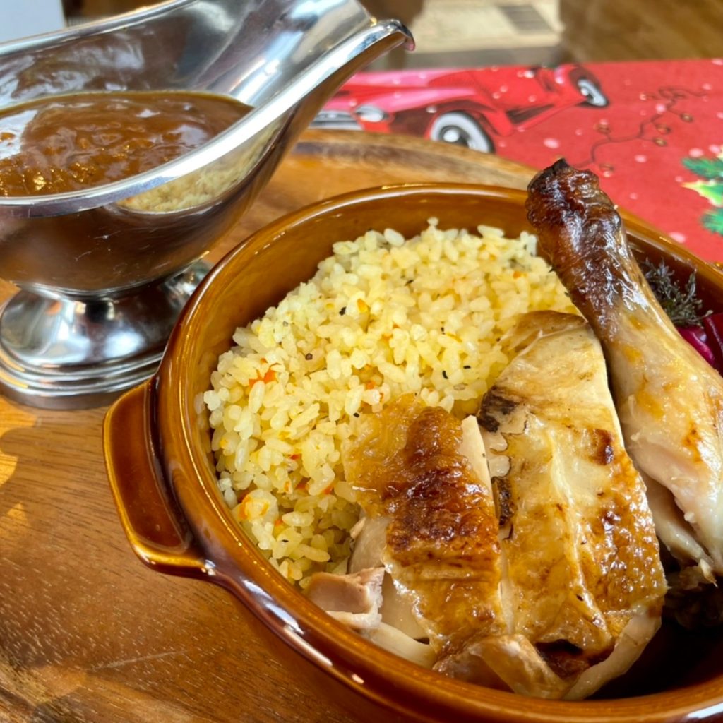 当店自慢のスープをベースに、玉ねぎの美味しさをたっぷり詰め込んだカレーをお届けいたします。焼きたてのローストチキンを濃厚なバターライスと一緒にお召し上がりください。