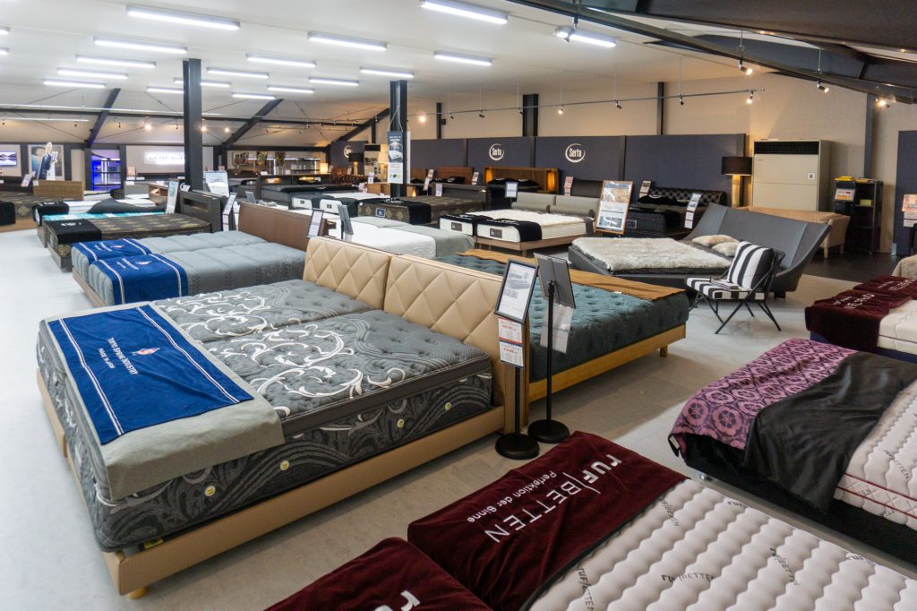 新井家具ベッド館さんはベッド・寝具の専門店。常時300台のあらゆるベッドが展示されています。