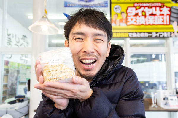 お菓子を手にしてめっちゃうれしそうなシュン@ひらつー