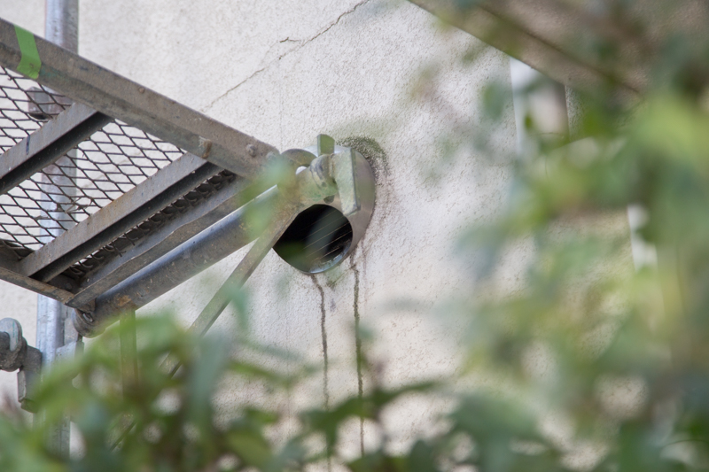 「もともとは外壁のパネルの継ぎ手だった部分ですね。表面が剥がれて割れてしまっているんです。年数が経って傷んできている兆候です」
