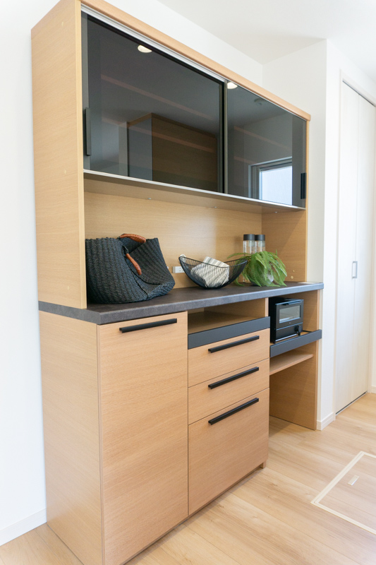 後ろの備え付けのカップボードもお部屋にマッチしていて◎