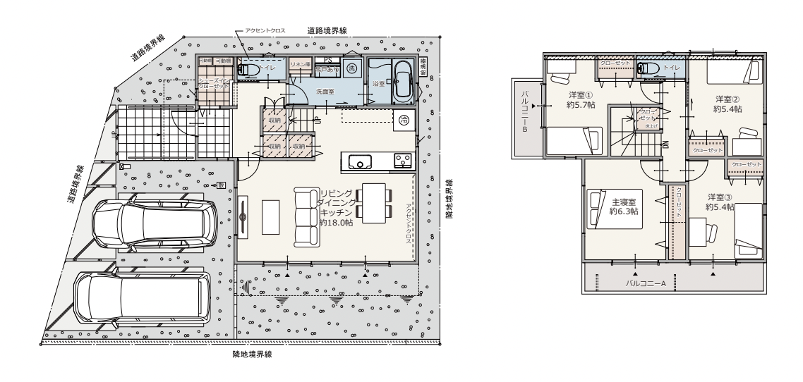 ここも角地で駐車スペースをしっかり確保していますよ!