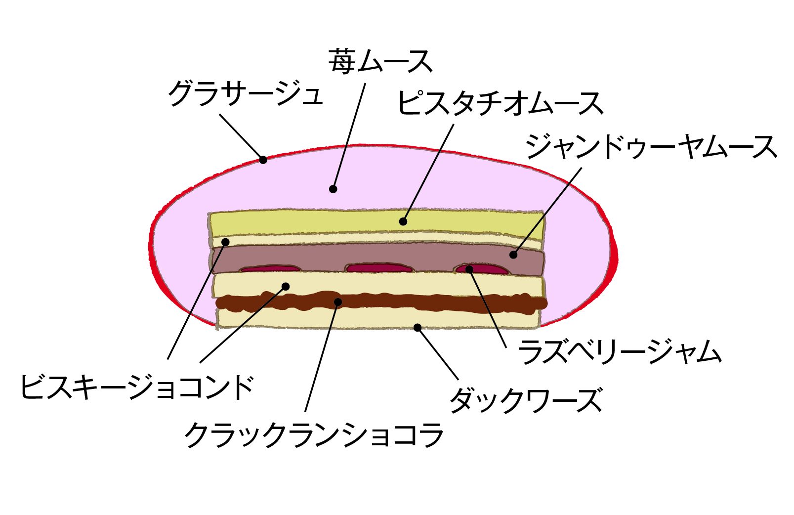 「クール ド フリュイ」は、それぞれの層で異なる食感を出し、口溶けの良い苺ムースやクラックランショコラのザクザク食感など絶妙なバランスでそれぞれの味がマッチするように仕上げています。