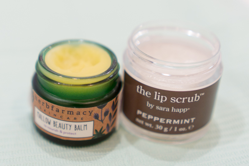 リップスクラブ(右)はミントの香り・リップバーム(左)は甘い香り。どちらも100%オーガニック素材
