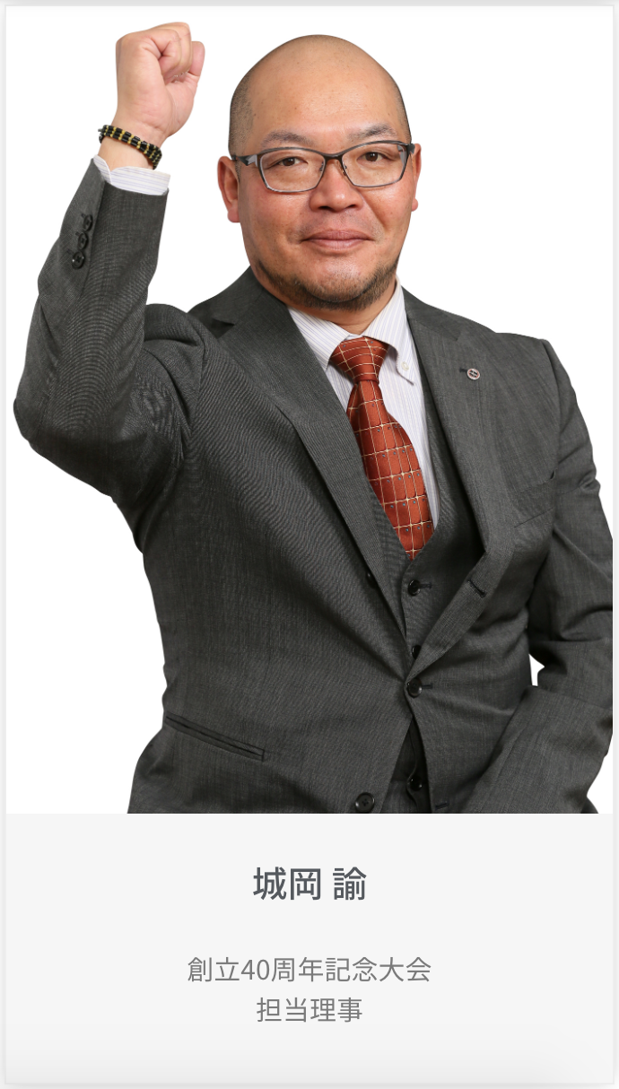 コチラは創立40周年記念大会担当理事で、樹工房(いつきこうぼう)代表の城岡さん。