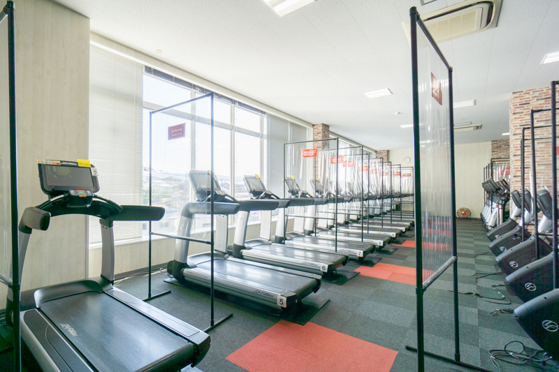 マシンは一台ずつの幅を開けて、パーテーションによる飛沫防止対策もされています。区切られてるから集中できるっ!