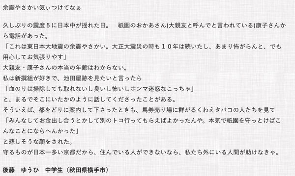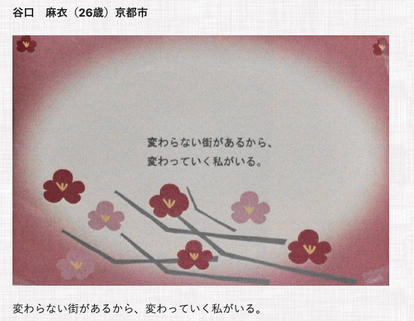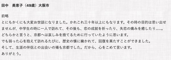 2009年から始まった取り組みで、京都にまつわる思い出などを文章・俳句・絵・写真など手紙で表現する企画。