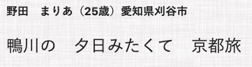 そんな京都を愛するあなたへ、京都が京都であり続ける為に、あなたの想いを文章(400文字以内)や俳句、和歌、川柳、絵手紙、写真等の形式でぜひ聞かせてください!!