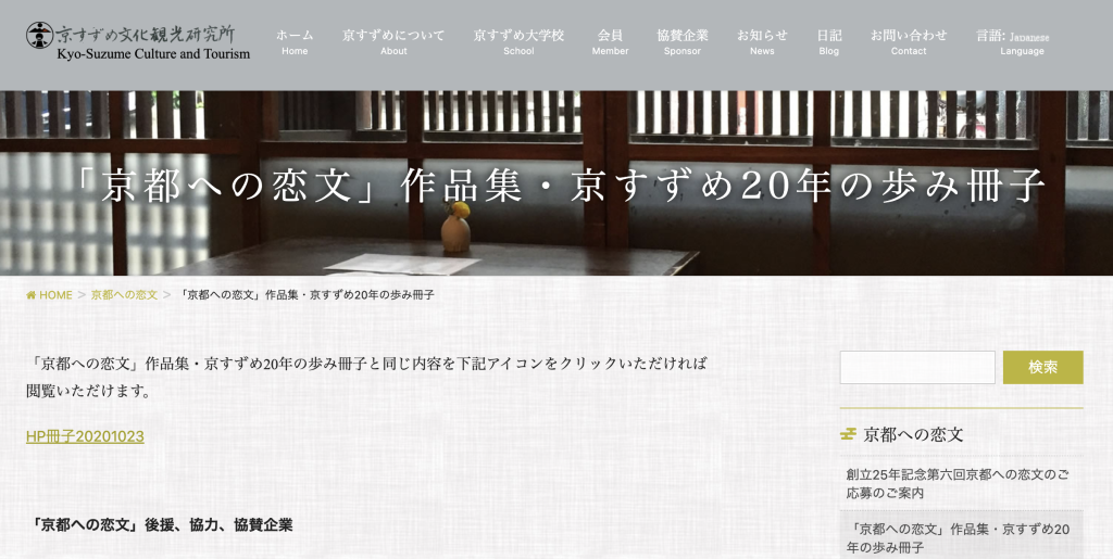 自由な形式で京都への想いを表現してもらった「恋文」を募集しています。