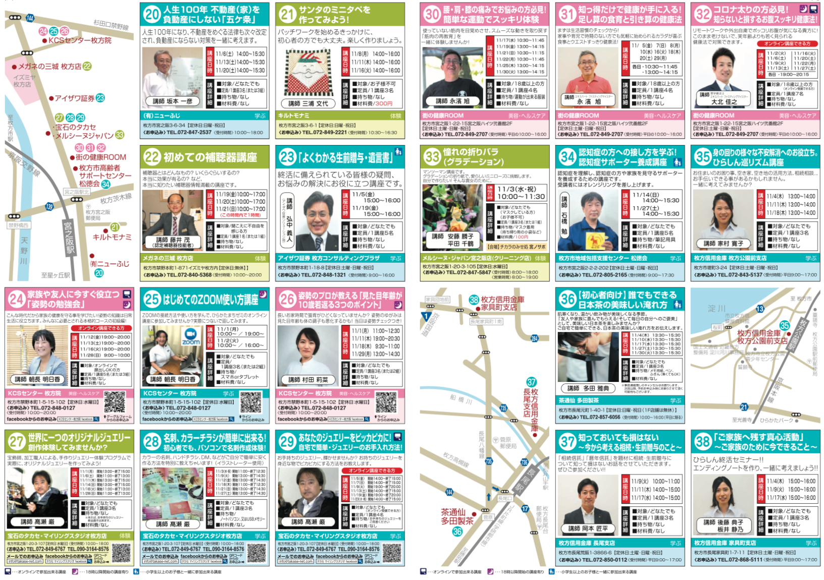 受付時間は各講座によって異なります。詳細はあとにある各お店の案内をご覧下さい。