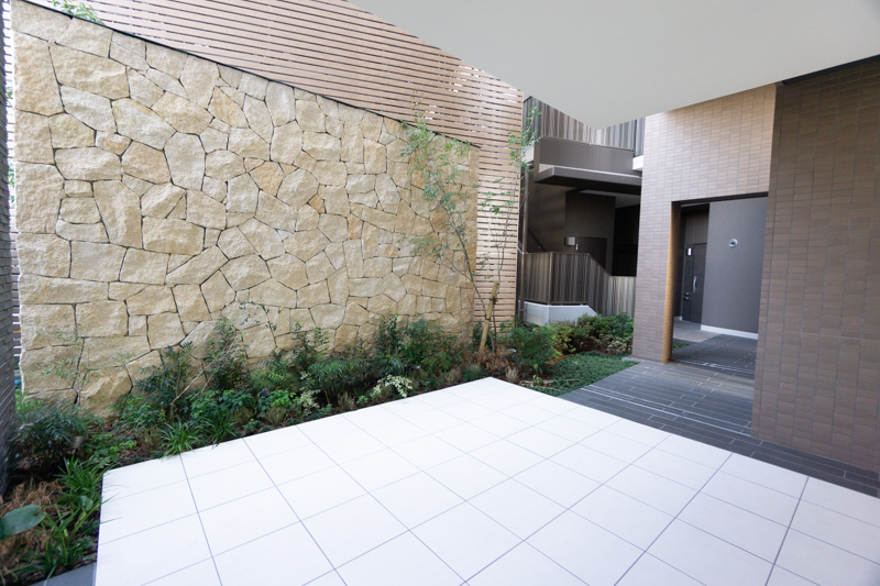 エントランスを抜けると岩壁✕グリーンがお出迎え。