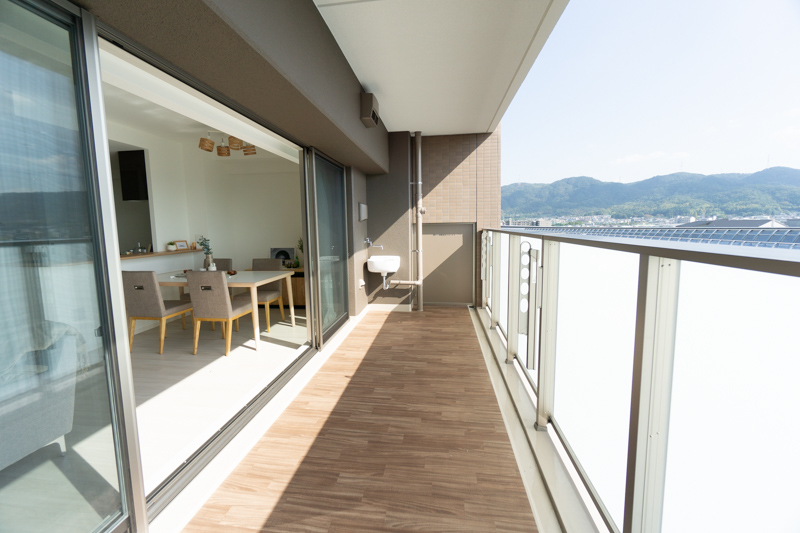 「ひろーいベランダにワイドに開く窓に周りに自然が広がるマンション、その名も…」