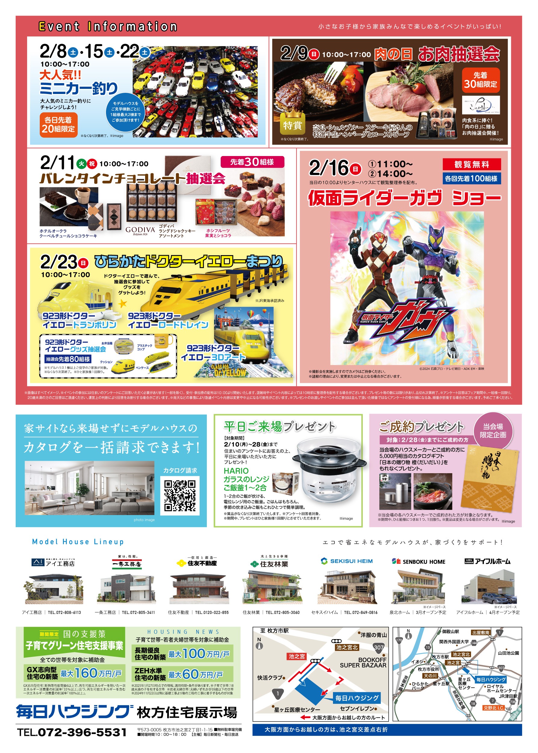 国道1号線沿いの「毎日ハウジング枚方展示場」で行われるイベントをお知らせする、【今月の毎日ハウジングイベント】のコーナー!