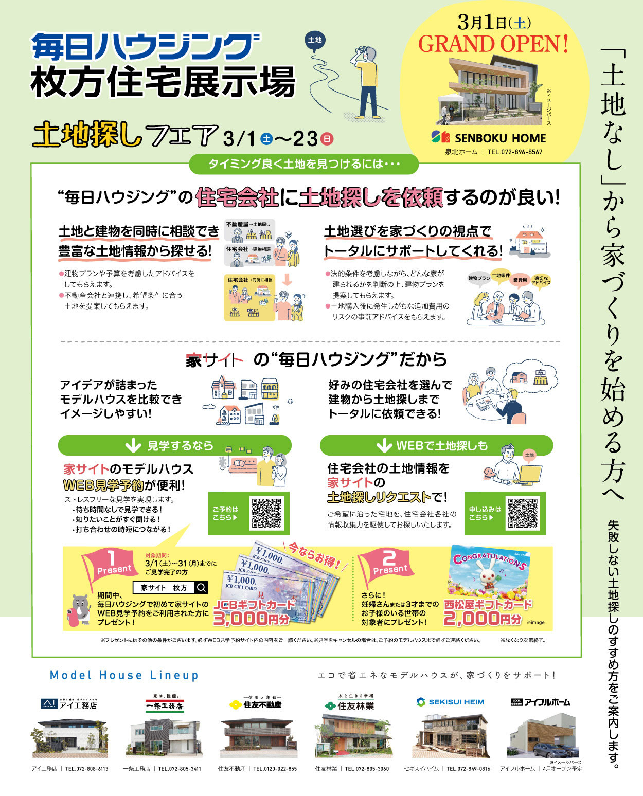 3/1(土)〜23(日)は「土地探しフェア」を同時開催!事前予約で豪華なギフトカードがもらえます!
