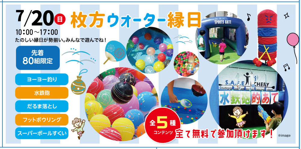 ヨーヨー釣り・水鉄砲・だるま落とし・フットボウリング・スーパーボールすくいが楽しめます!